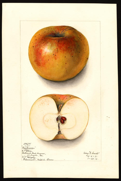 Originated on a farm in Missouri in the 1800’s. Prized for its fresh eating qualities and vigor and productiveness of the tree. Large, roundish-oblate fruit. Smooth, deep yellow skin sometimes with reddish-orange blush. Firm, yellow, juicy flesh, aromatic and flavorful. Widely planted across Colorado by early fruit growers. Found in a historic orchard by MORP, but is now considered an endangered apple.